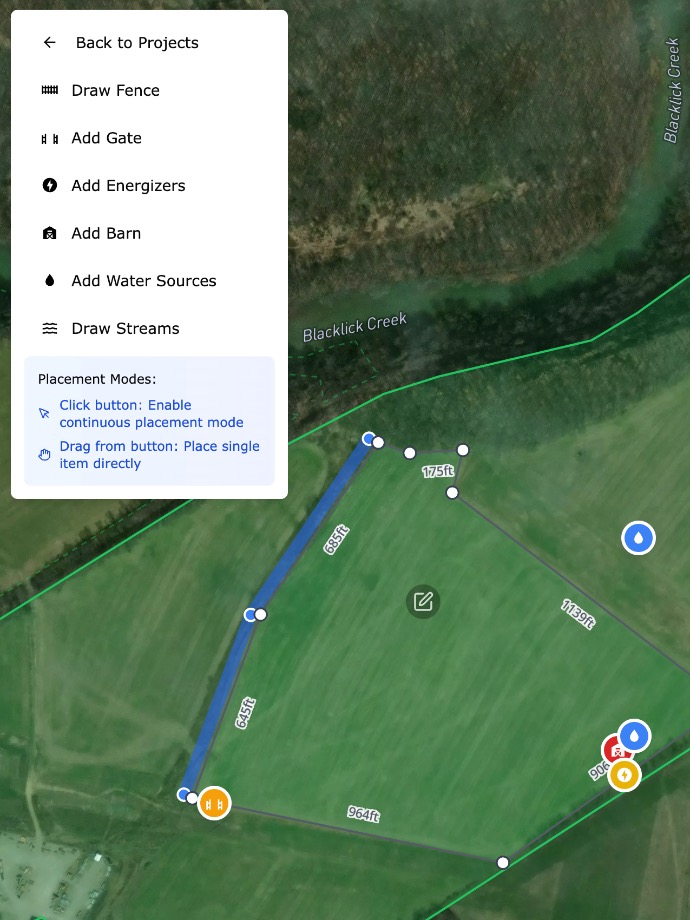 Draw Everything — Not Just the Fence: Mark gates, barns, treelines, water crossings, soil boundaries, and more.